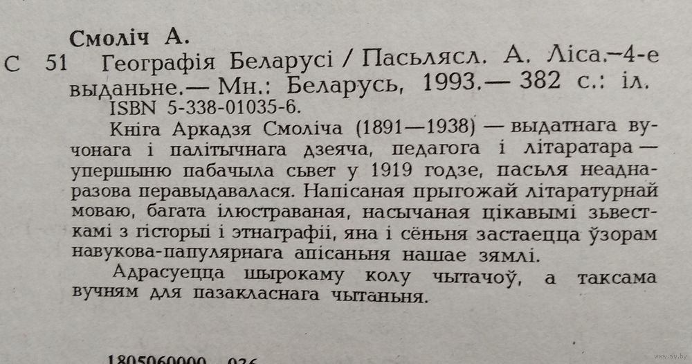 Аркадзь Смоліч. Геаграфія Беларусі. 4-е выд. Міннск : Беларусь, 1993 г. 374 с. Цверды пераплет.