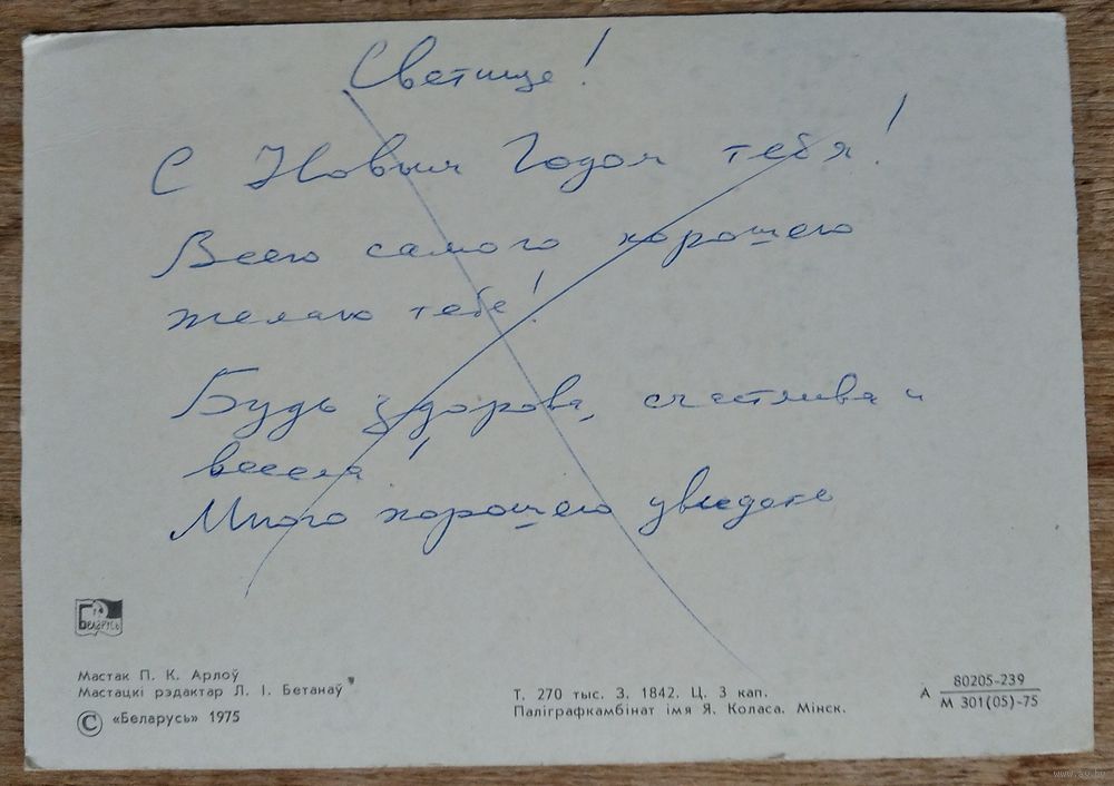 Арлоў П. З Новым годам. Мінск. (Орлов П. С Новым годом. Минск.) 1975 г. Падпiсана.