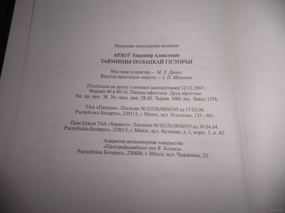 Арлоу У.А.Таямнiцы полацкай гiсторыi Мiнск 2007 г.тир.3000 зкз.Новая!С рубля.