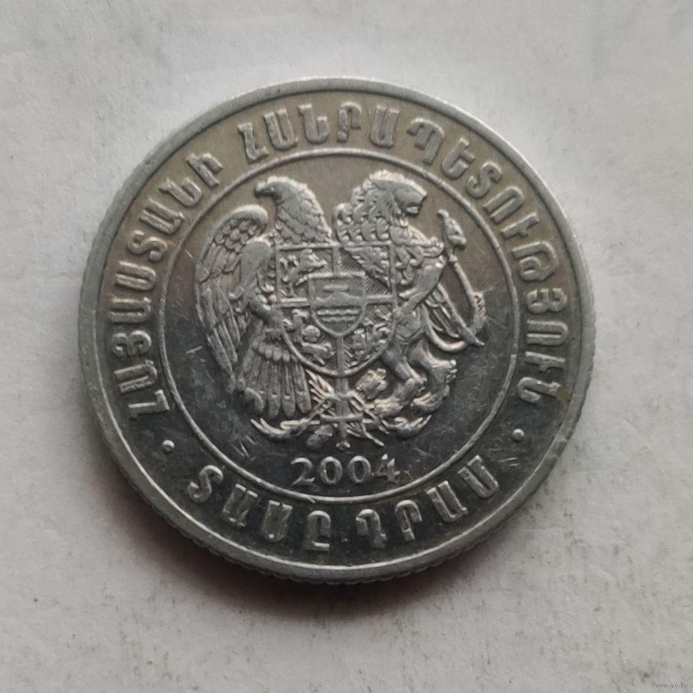 Номер KM # 112 Страна Армения Период Республика Армения (1994 - 2025) Валюта Армянский драм Вид чекана Регулярный чекан Номинал 10 драмов Год 2004 Гурт Рубчатый Форма Круг Отношение авс/рев Медальное (0°) Материал Алюминий Вес (g) 1,3 Диаметр (mm) 20 Толщина (mm) 1,8