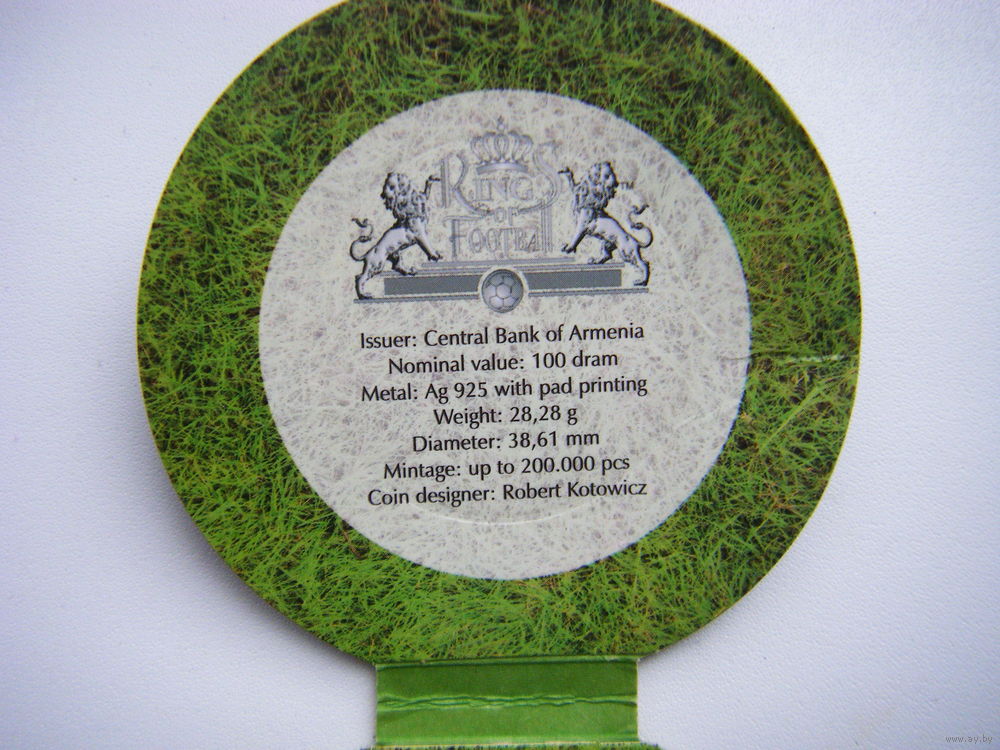 Армения 100 драм 2008г. Ag 925 Футбол.