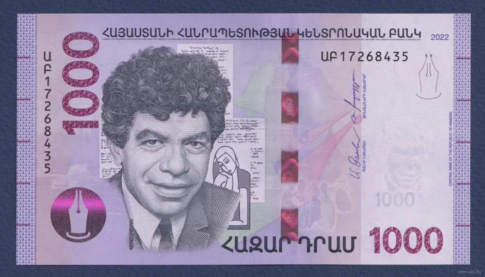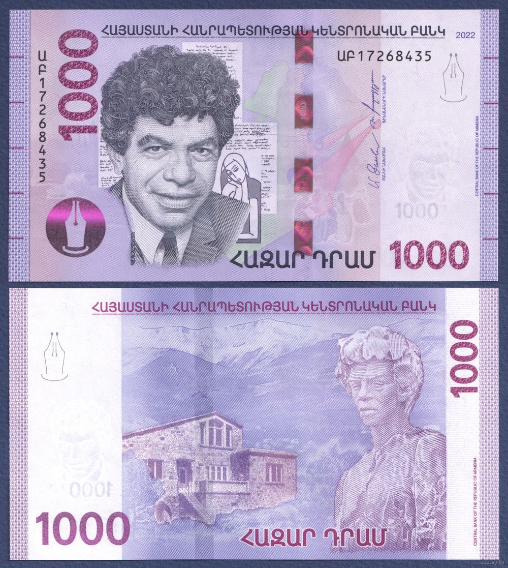 Армения, 1000 драм 2022 г, P-W61 (поэт Паруйр Севак), UNC