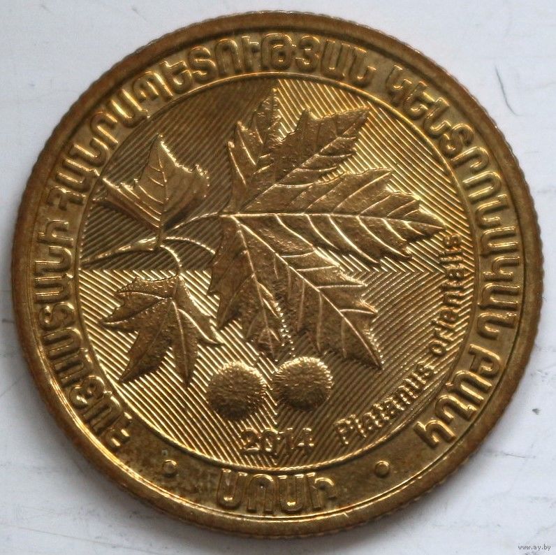Армения 200 драмов 2014 год "Деревья Армении - Платан восточный (Platanus orientalis)"