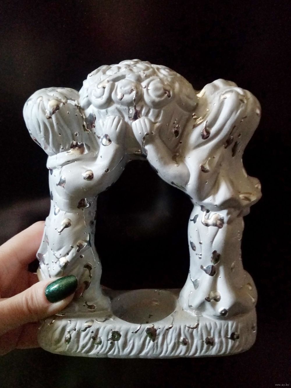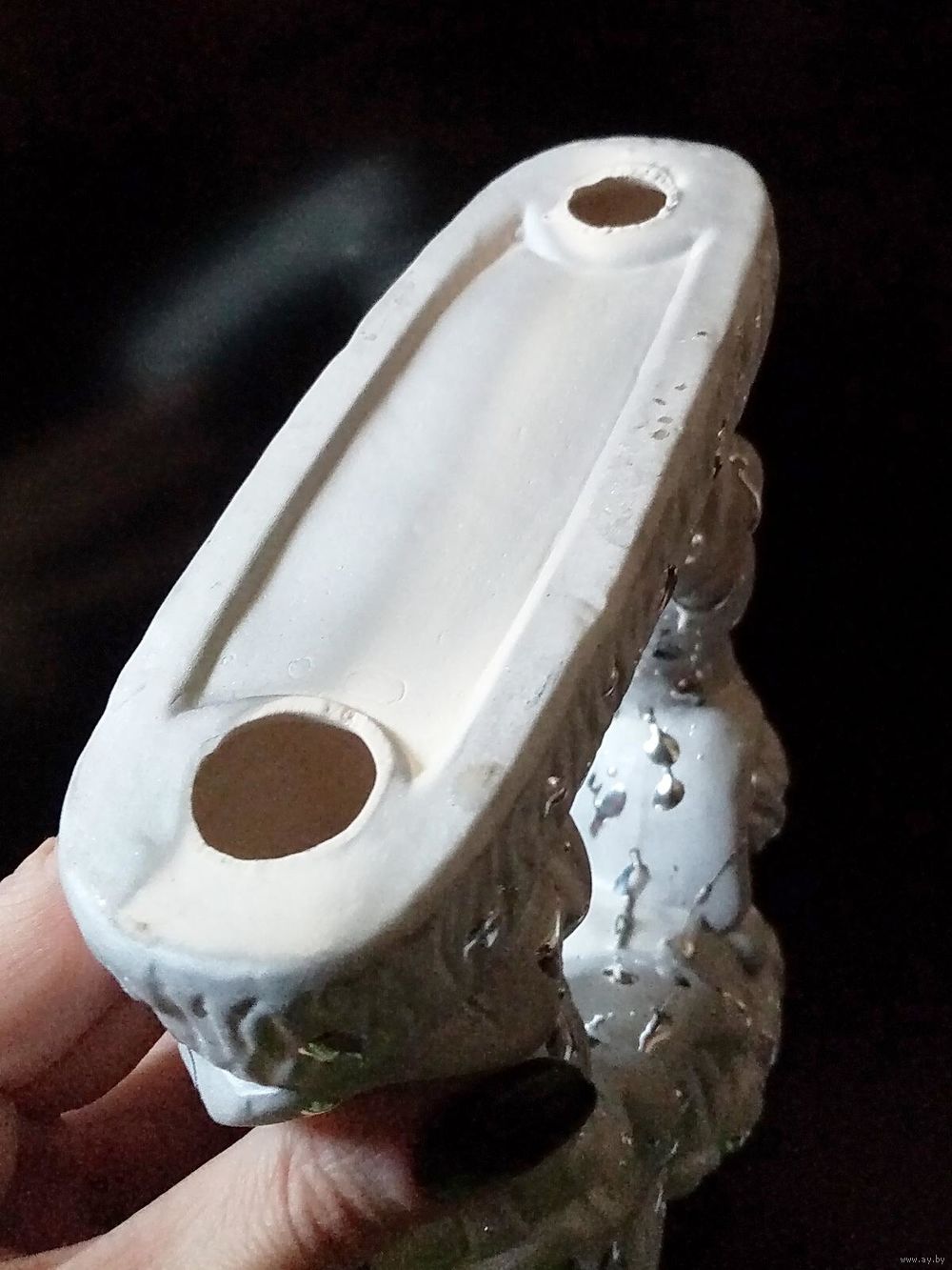| на фото, керамика. Если использовать как аромалампу - желательно укоротить цепочки чашечки, а если как подсвечник - вообще её снять. | |