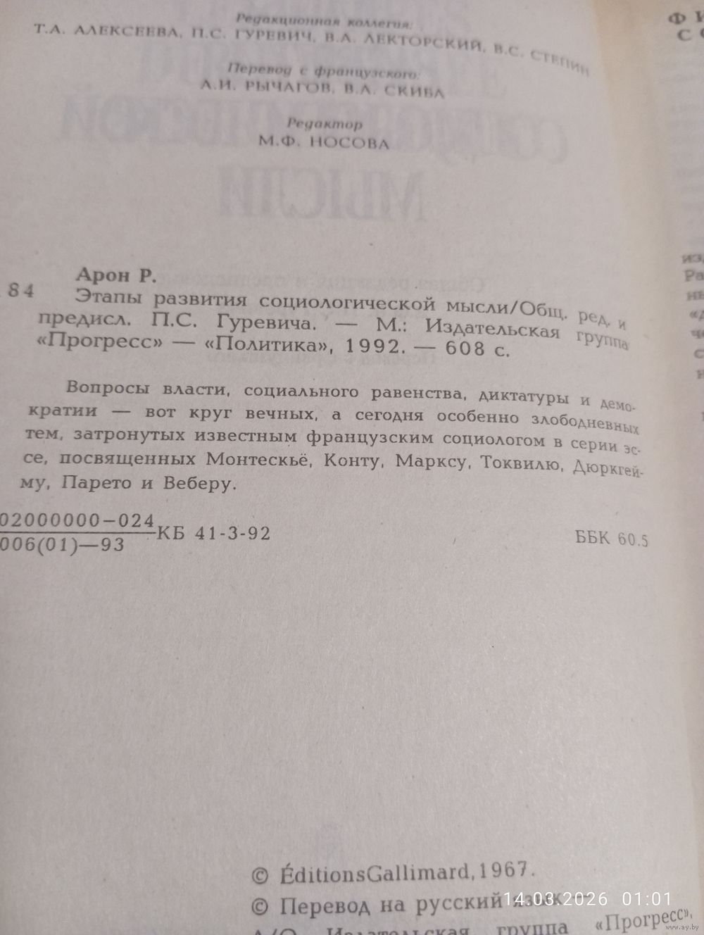 Раймон Арон. Этапы развития социологической мысли. М. Прогресс 1993. В прекрасном состоянии, тв переплет. 608 с. Возможность отправки Белпочтой, полная предоплата