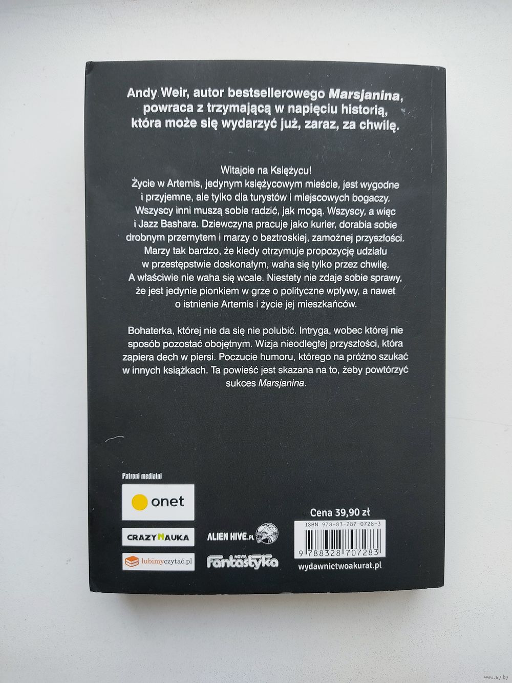Книга на польском языке от автора экранизированный повести "Марсианин". Artemis - город на Луне. Книга один раз прочитана.
