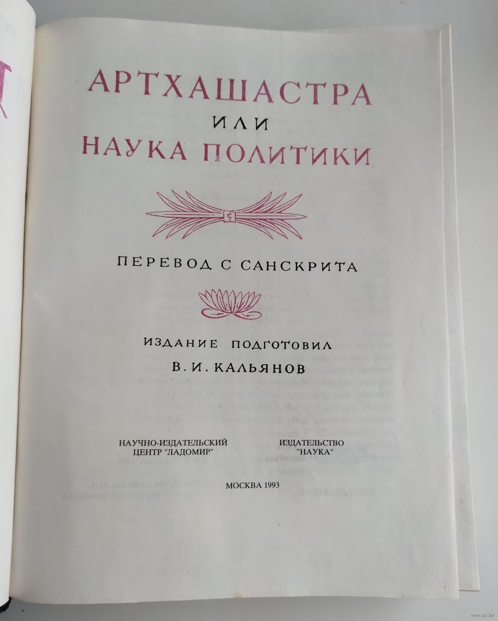 Артхашастра, или наука политики. Серия: Литературные памятники. М. -Л., АН СССР, 1993г., 793 с. Твёрдый переплёт. Увеличенный формат.