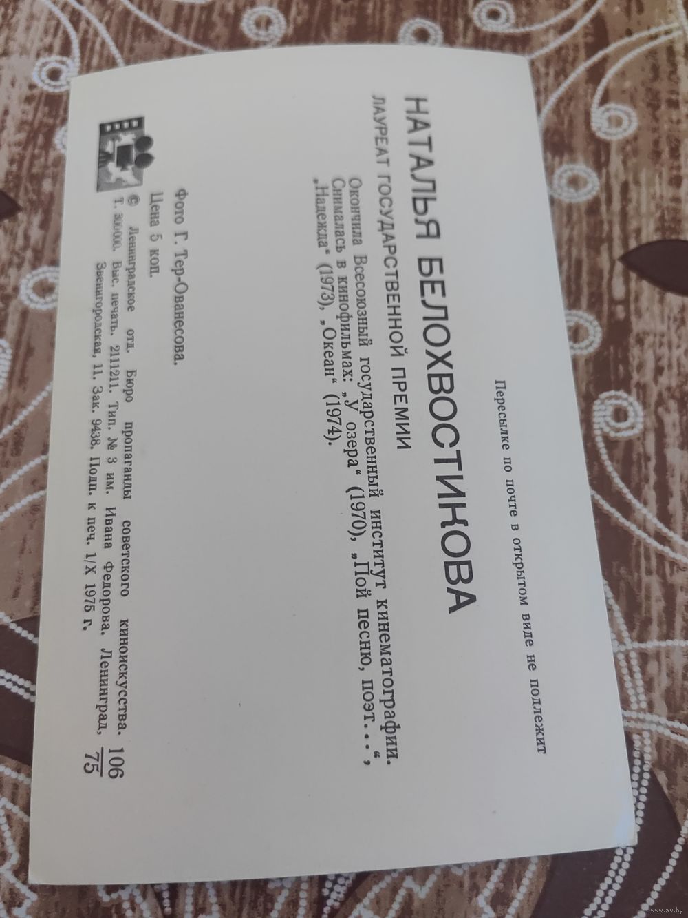 Полная предоплата до отправки лота по почте