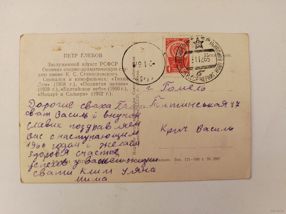 Артисты. Петр Глебов. Подписанная. 1464.