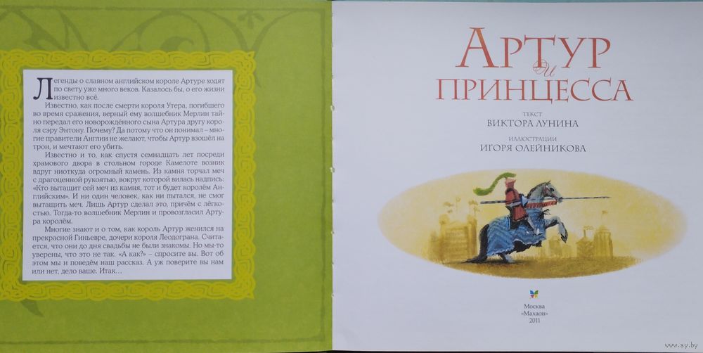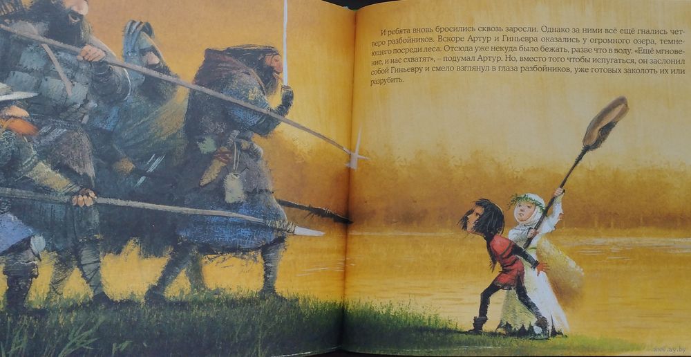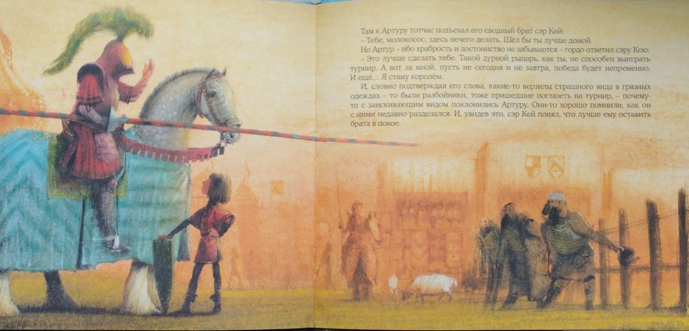 Большой энциклопедический формат. Мелованный альбом. Легенды о славном английском короле Артуре ходят по свету уже много веков. Казалось бы, о его жизни известно всё. Известно, как после смерти короля Утера, погибшего во время сражения, верный ему волшебник Мерлин тайно передал его новорождённого сына Артура другу короля сэру Энтону. Почему? Да потому что он понимал - многие правители Англии не желают, чтобы Артур взошёл на трон, и мечтают его убить. Известно и то, как спустя семнадцать лет посреди храмового двора в стольном городе Камелоте возник вдруг ниоткуда огромный камень. Из камня торчал меч с драгоценной рукоятью, вокруг которой вилась надпись: "Кто вытащит сей меч из камня, тот и будет королём Английским". И ни один человек, как ни пытался, не смог вытащить меч. Лишь Артур сделал это, причём с лёгкостью. Тогда-то волшебник Мерлин и провозгласил Артура королём. Многие знают и о том, как король Артур женился на прекрасной Гиньевре, дочери короля Леодограна. Считается, что они до дня свадьбы не были знакомы. Но мы-то уверены, что это не так. "А как?" - спросите вы. Вот об этом мы и поведём наш рассказ. А уж поверите вы нам или нет, дело ваше. Итак…