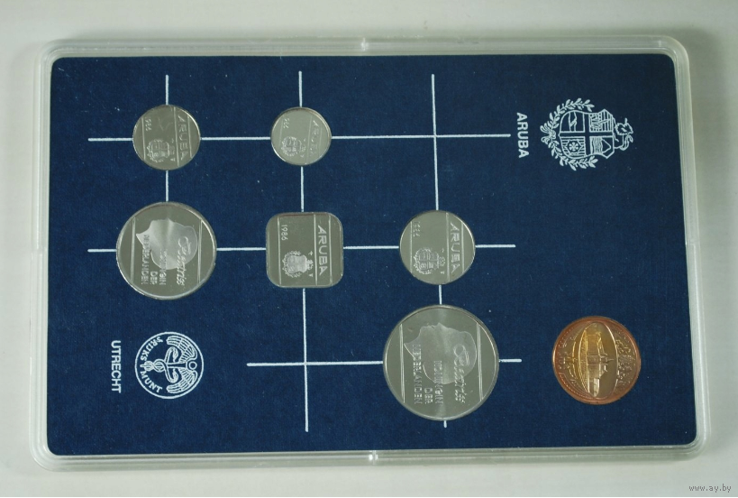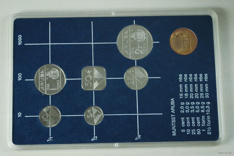 Аруба годовой набор 5+10+25+50 центов 1+2,5 гульдена + жетон 1986 год, UNC.