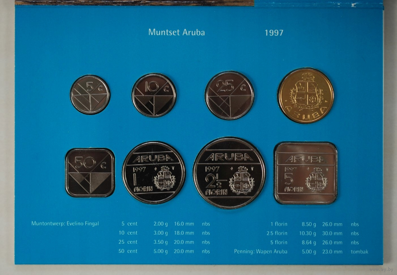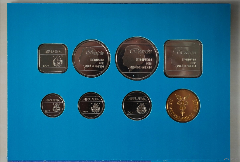 Аруба годовой набор 5+10+25+50 центов 1+2,5 гульдена + жетон 1997 год, UNC.