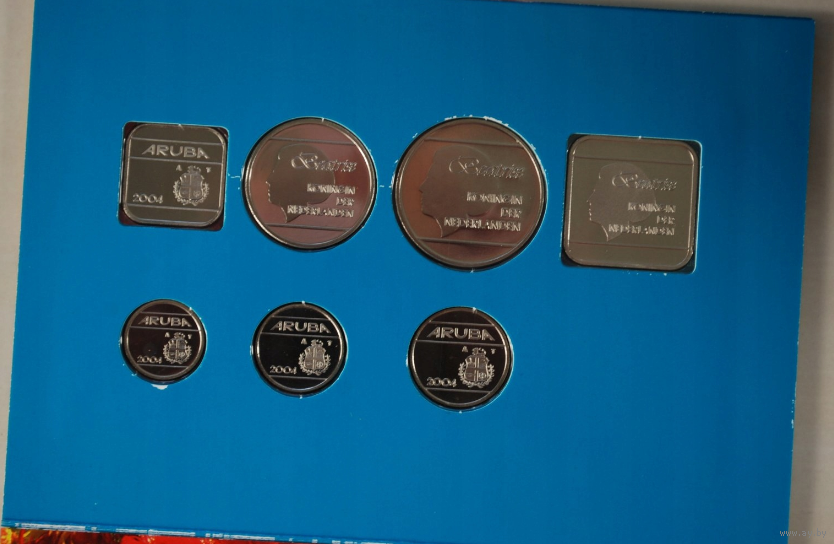 Аруба годовой набор 5+10+25+50 центов 1+2,5 гульдена + жетон 2004 год, UNC.
