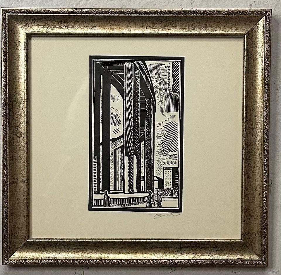 Асецкий Л.П. Заслуженный художник."Каланада Акадэміі навук",линогравюра. с рамой 24х25 см.
