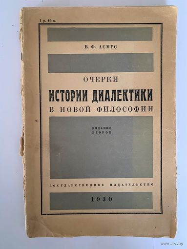 Асмус В.Ф. Очерки истории диалектики в новой философии. Госиздат. 1930г. 248 с., Мягкая обложка