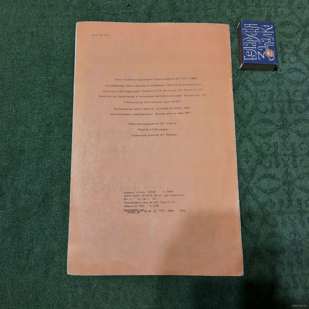 Атлас автомобильных дорог Прибалтика и Белоруссия. Москва 1982г.