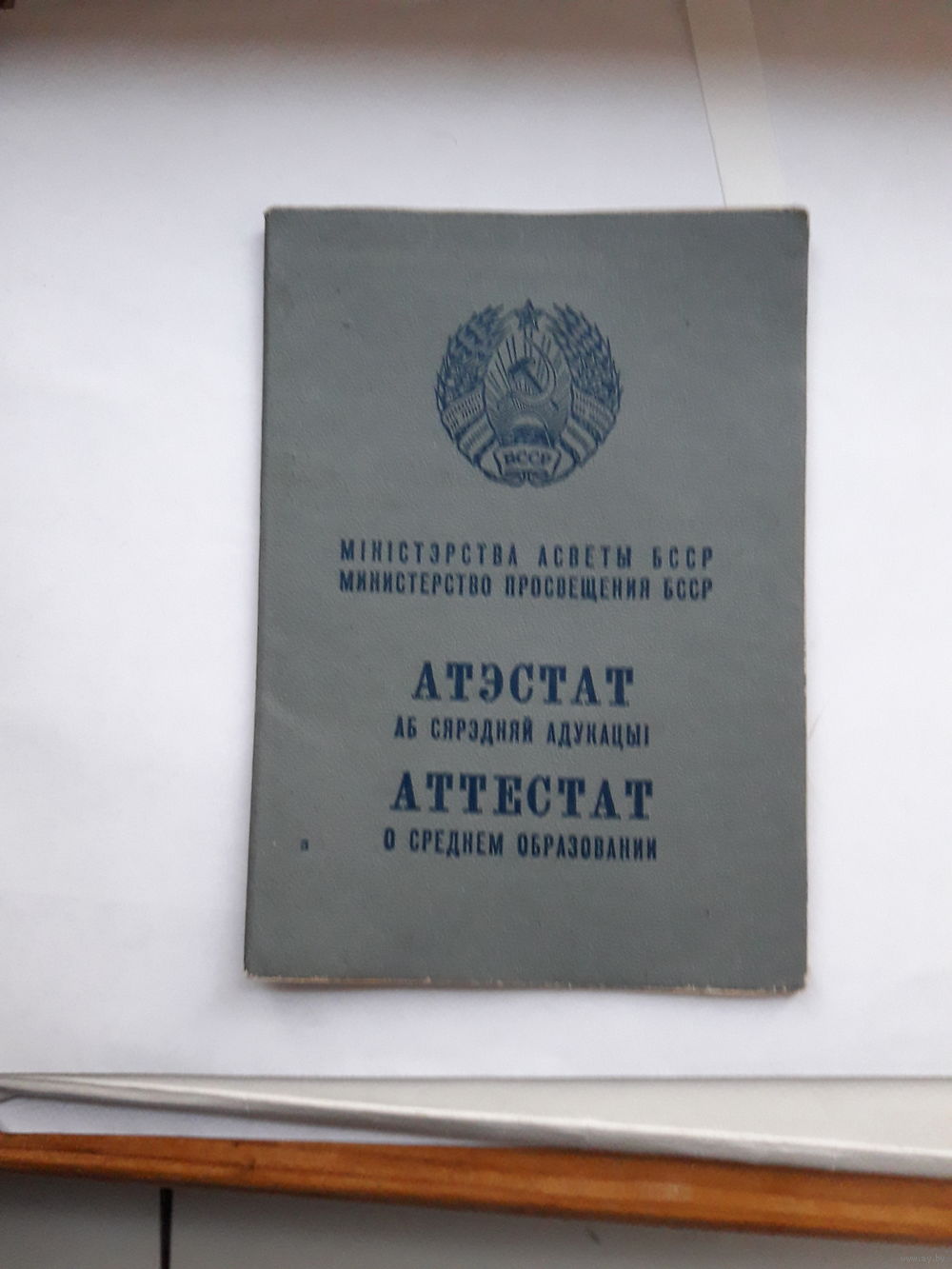 Аттестат о среднем образовании Мин. просвещения БССР Гознак 1971