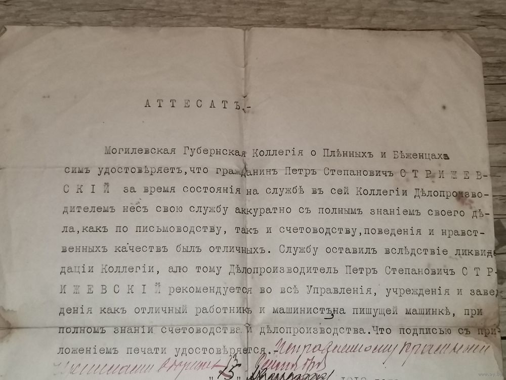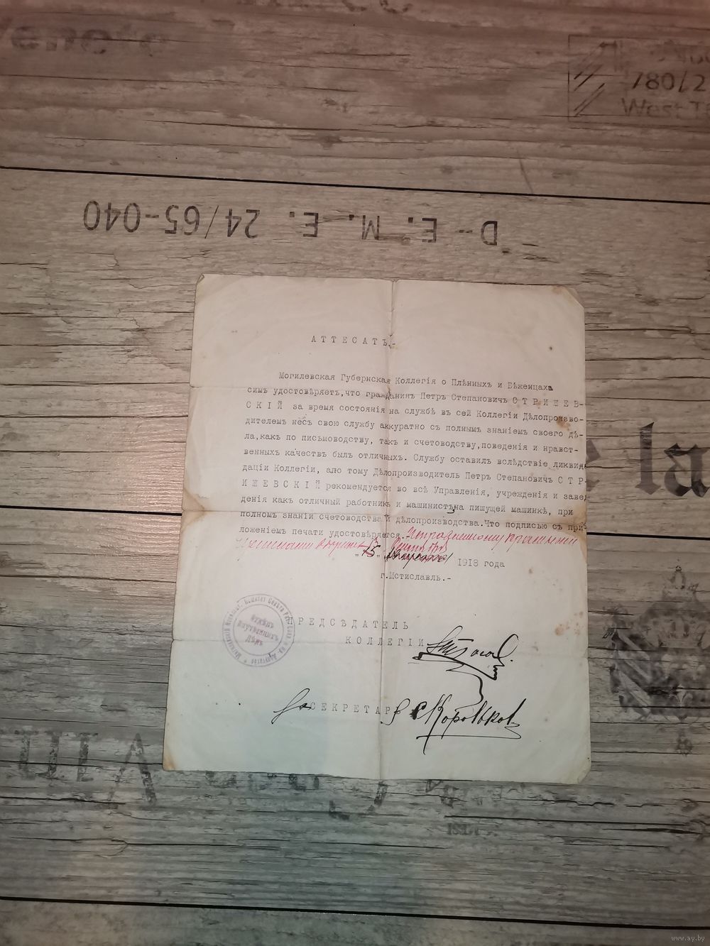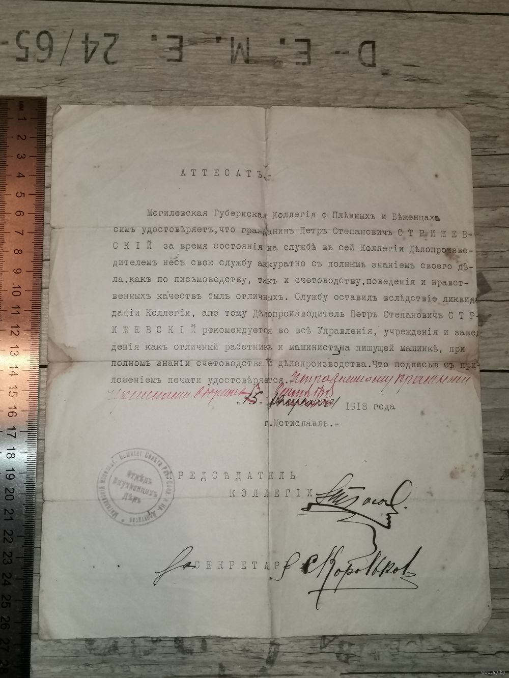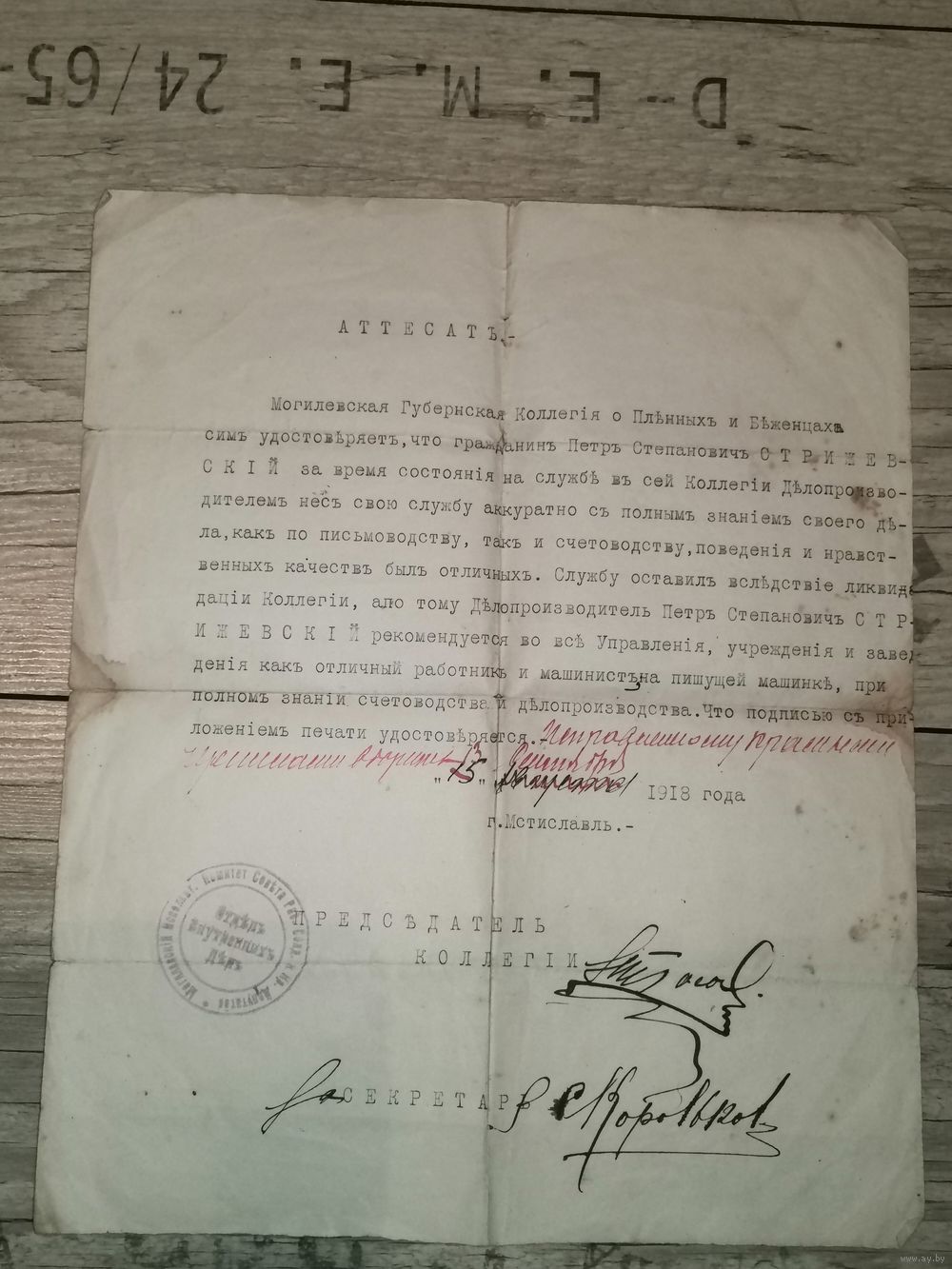 Аттестат с рекомендацией, 1918 года, город Мстиславль, Могилёвская губерния.