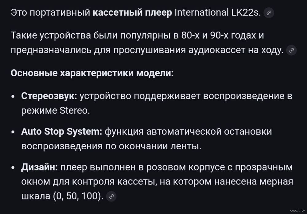 Ностальгия из 80-90-х годов-практически новый кассетный аудио плеер "INTERNATIONAL LK-22S" стерео (мыльница) в рабочем состоянии для ценителей раритетов.В подарок наушники,десяток кассет с музыкой и батарейки.Просьба смс не писать,общаюсь по телефону,без торга.