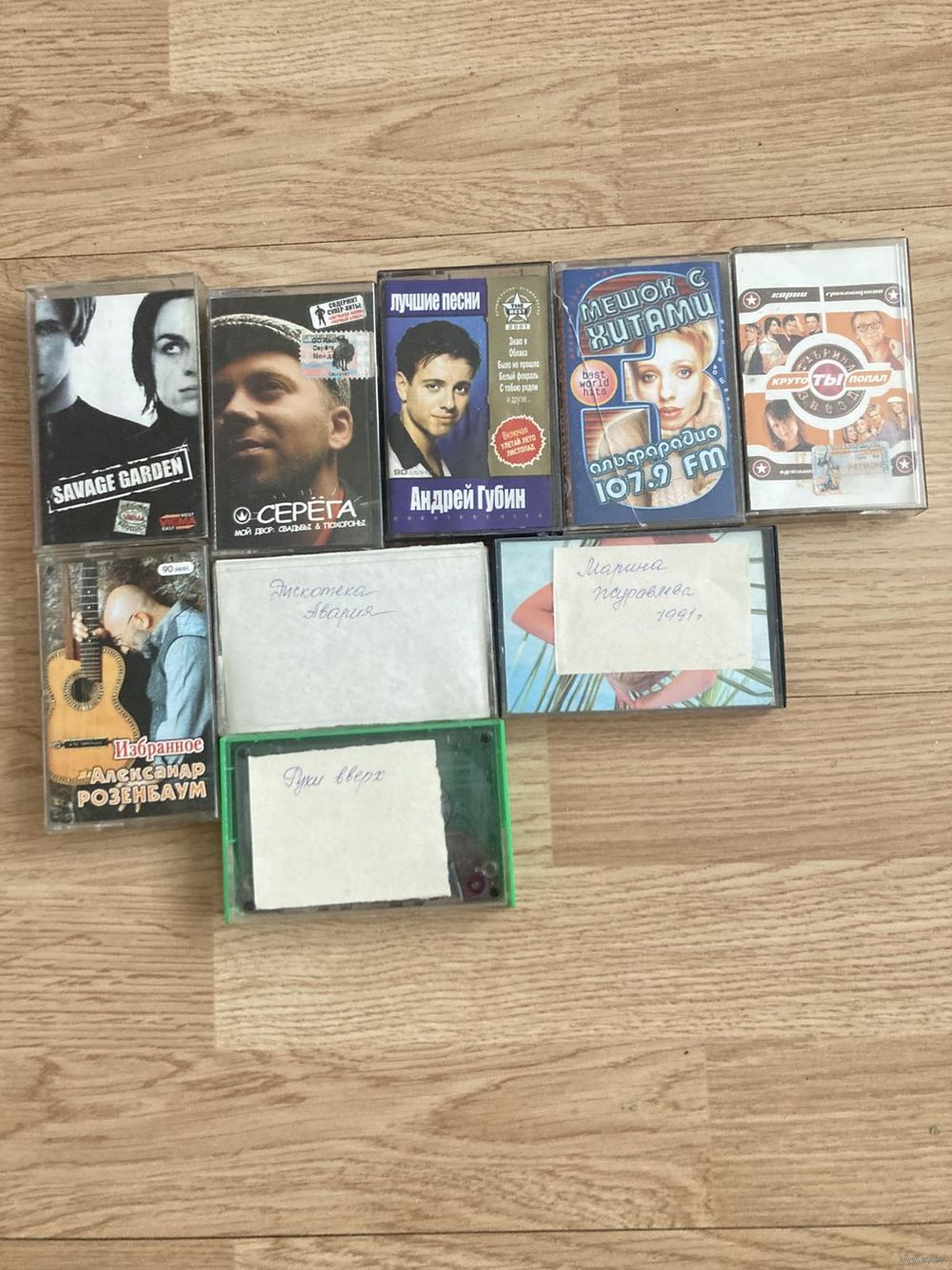 Аудиокассеты с записями: Андрей Губин, Розенбаум, Руки вверх, Дискотека Авария (с Жуковым), Марина Журавлева, Savage Garden, Фабрика звезд -1, Мешок с хитами, Серега. В отличном состоянии. Отправлю любой почтой.