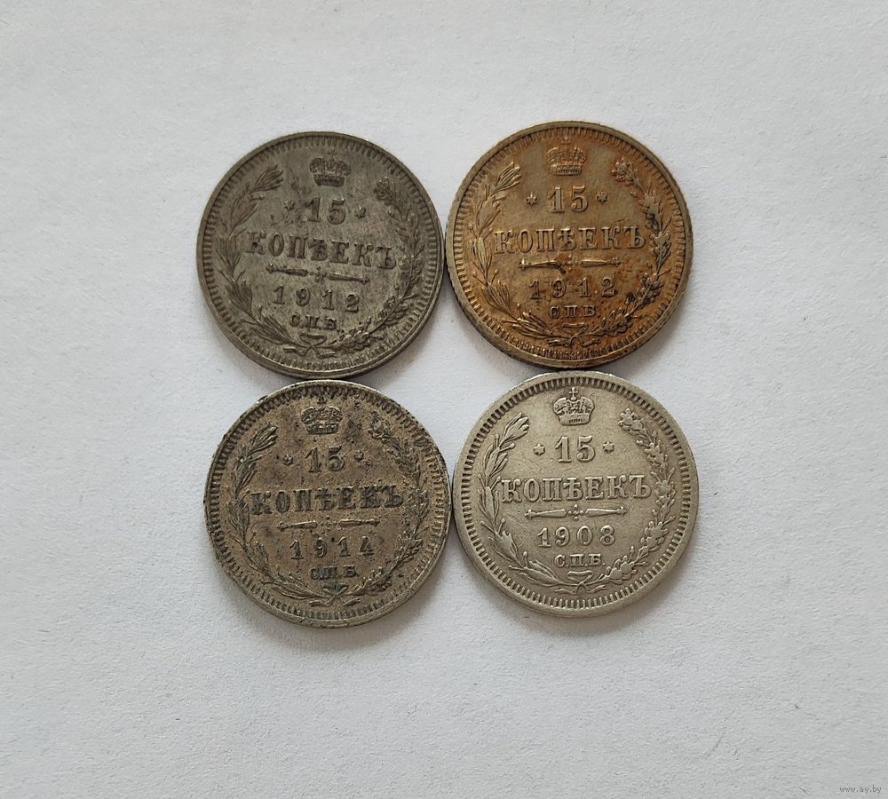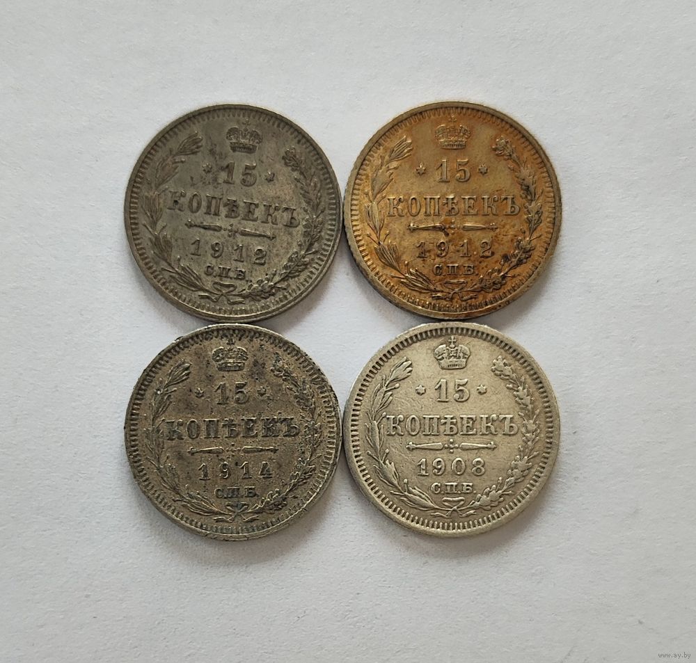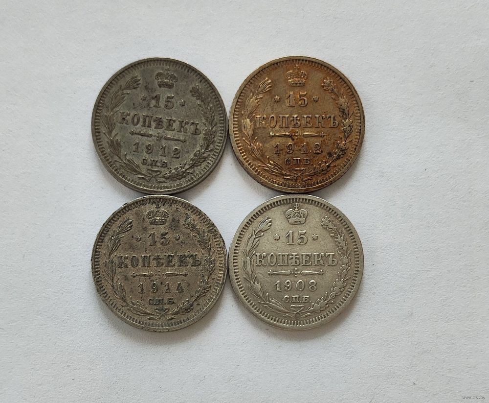 Аукцион с рубля Отличные 15 копеек Николая 2 в количестве 4 штук Не чищенные Смотрите также другие мои лоты (лот 2)