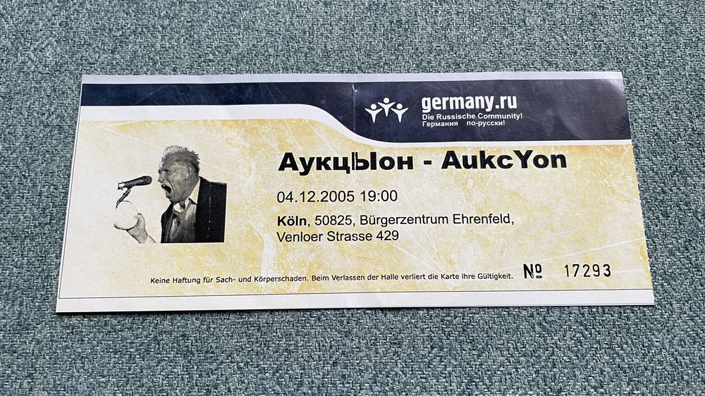 АукцЫон / билет на концерт в Кёльне 04.12.2005 год / с 1 РУБЛЯ