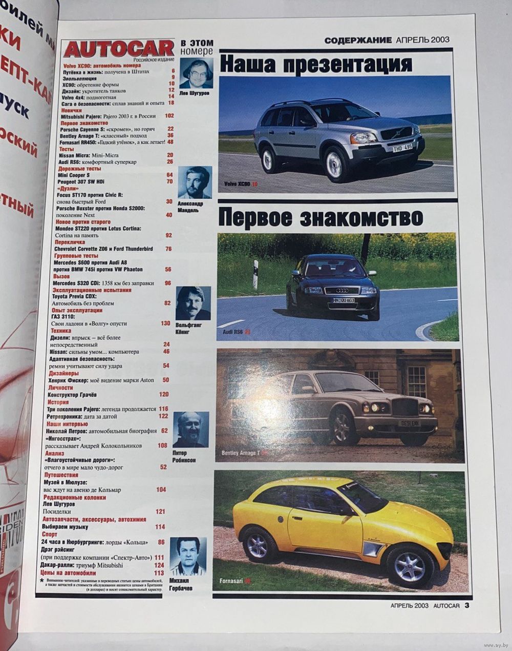 Журнал Автокар / Autocar апрель 2003 года. Содержание на фото.