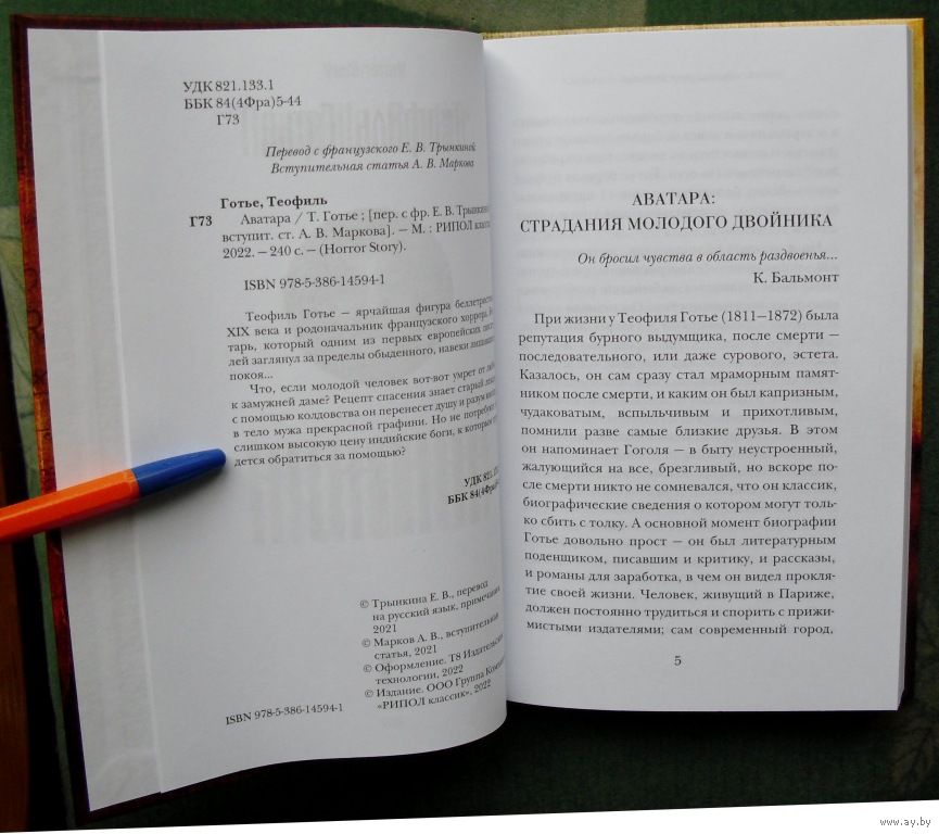 Теофиль Готье — ярчайшая фигура беллетристики XIX века и родоначальник французского хоррора. Бунтарь, который одним из первых европейских писателей заглянул за пределы обыденного, навеки лишившись покоя... Что если молодой человек вот-вот умрет от любви к замужней даме? Рецепт спасения знает старый лекарь: с помощью тайных знаний он перенесет душу и разум юноши в тело мужа прекрасной графини. Но не потребуют ли слишком высокую цену индийские боги, к которым придется обратиться за помощью?