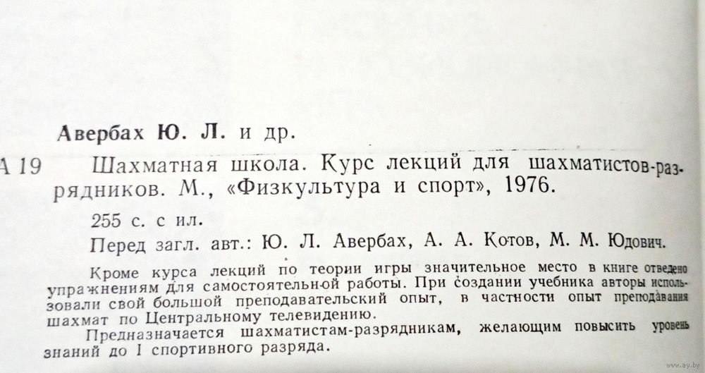 Ю. Л. Авербах, А. А. Котов, М. М. Юдович. Шахматная школа.