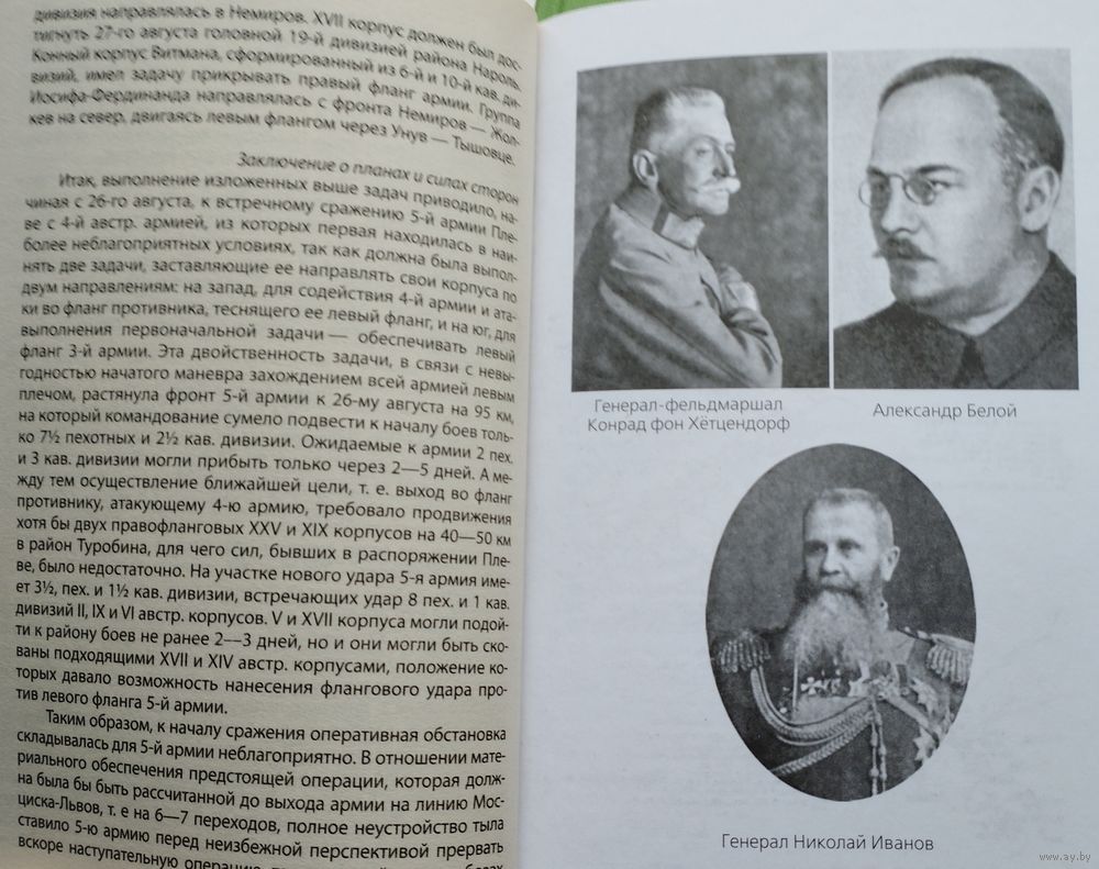 Тираж 1500 экз. 432 стр. Русские войска вошли в австрийский Львов в августе 1914 года, меньше чем через месяц после начала Великой войны. Невероятный успех русского оружия стал возможен благодаря целому ряду факторов, которые позволили одержать победу в одном из величайших сражений Первой мировой. Галицийская битва сегодня практически забыта, чему есть понятные причины политического характера. В ходе этого сражения Россия впервые включила в состав страны территорию Восточной Галиции, которую мы знаем сегодня как Западную Украину. Скрупулезное исследование Александра Белого буквально по часам реконструирует подробности этой операции. Александр Сергеевич Белой (1882 – 1938) – русский и советский военачальник, военный историк, комбриг. Он принимал непосредственное участие в боях под Львовом и стал автором целого ряда работ, посвященных действиям российской армии в Первой мировой войне. А. Белой стал жертвой сталинских репрессий, а его труды оказались под запретом. Это первое переиздание книги с 1929 года.