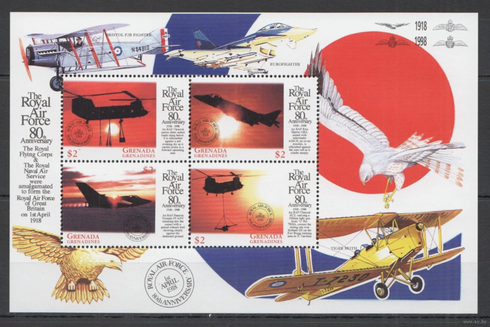 Авиация Самолеты - 80 лет Королевским ВВС Хищные птицы Гренада Гренадины 1998 MNH
