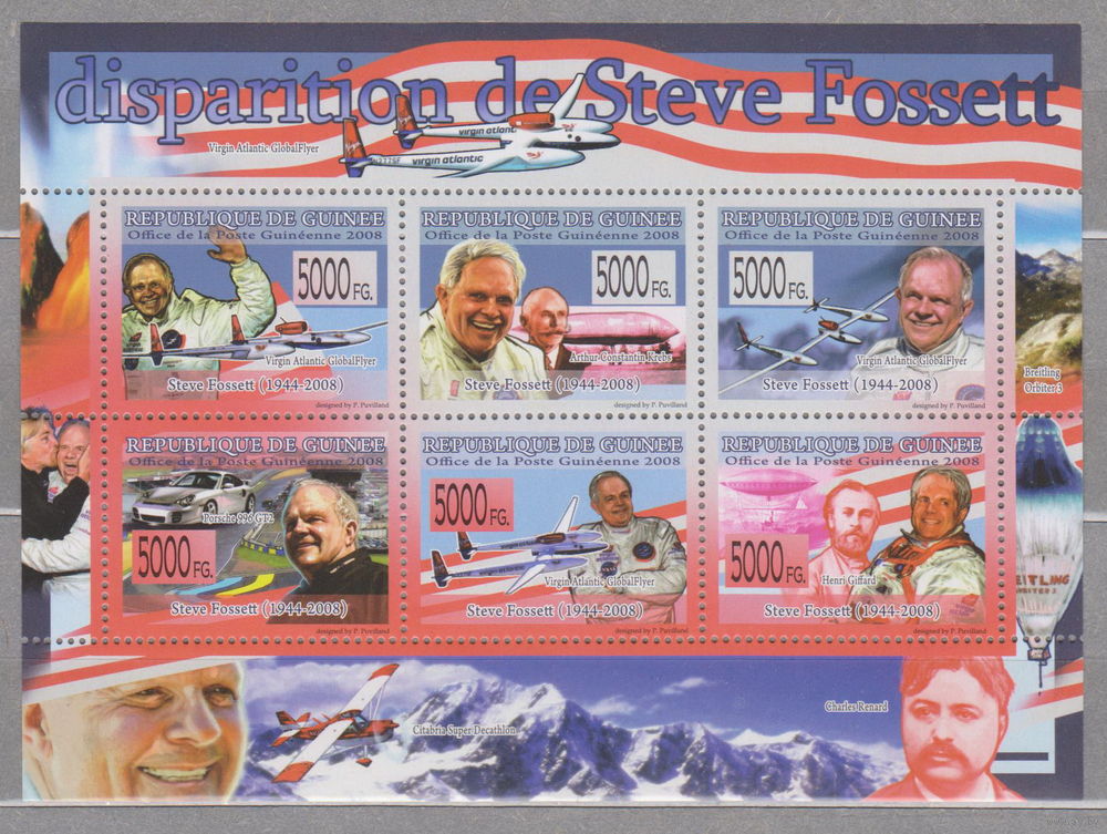 Авиация Самолеты известные люди личности Гвинея 2008г блок лист ЧИСТЫЙ лот 2020