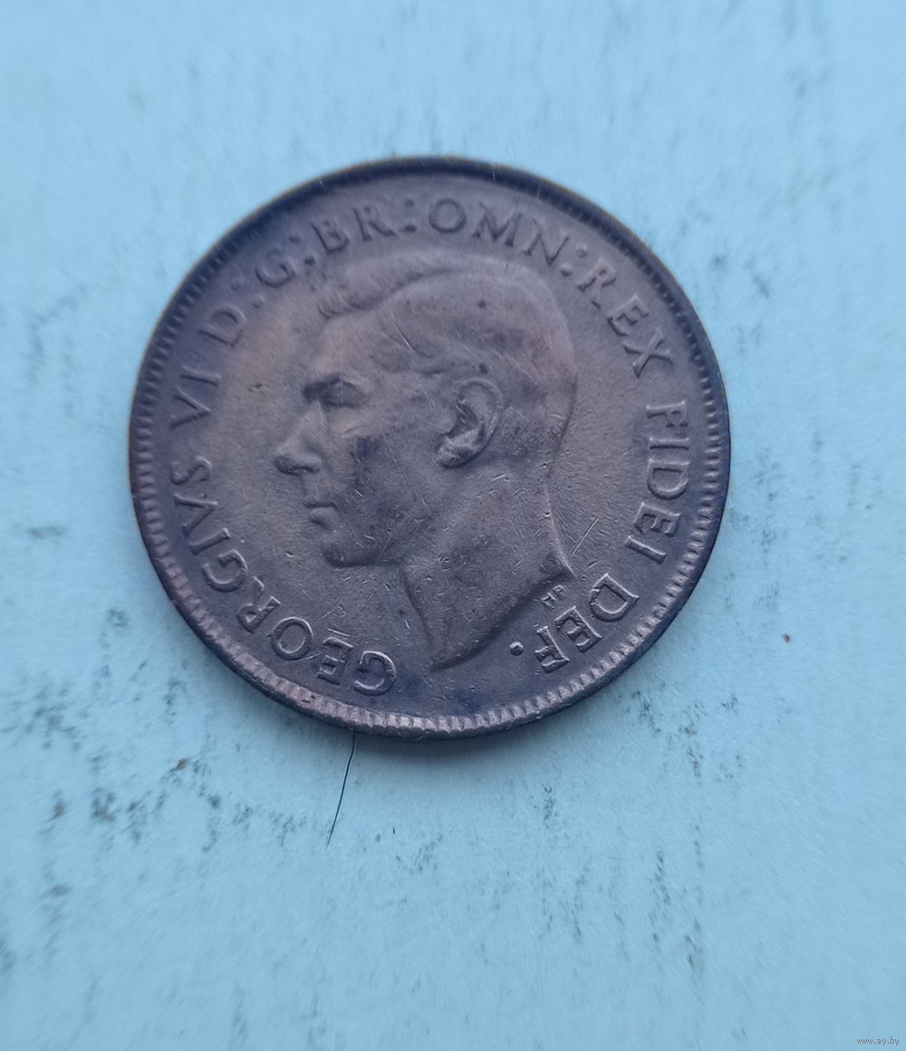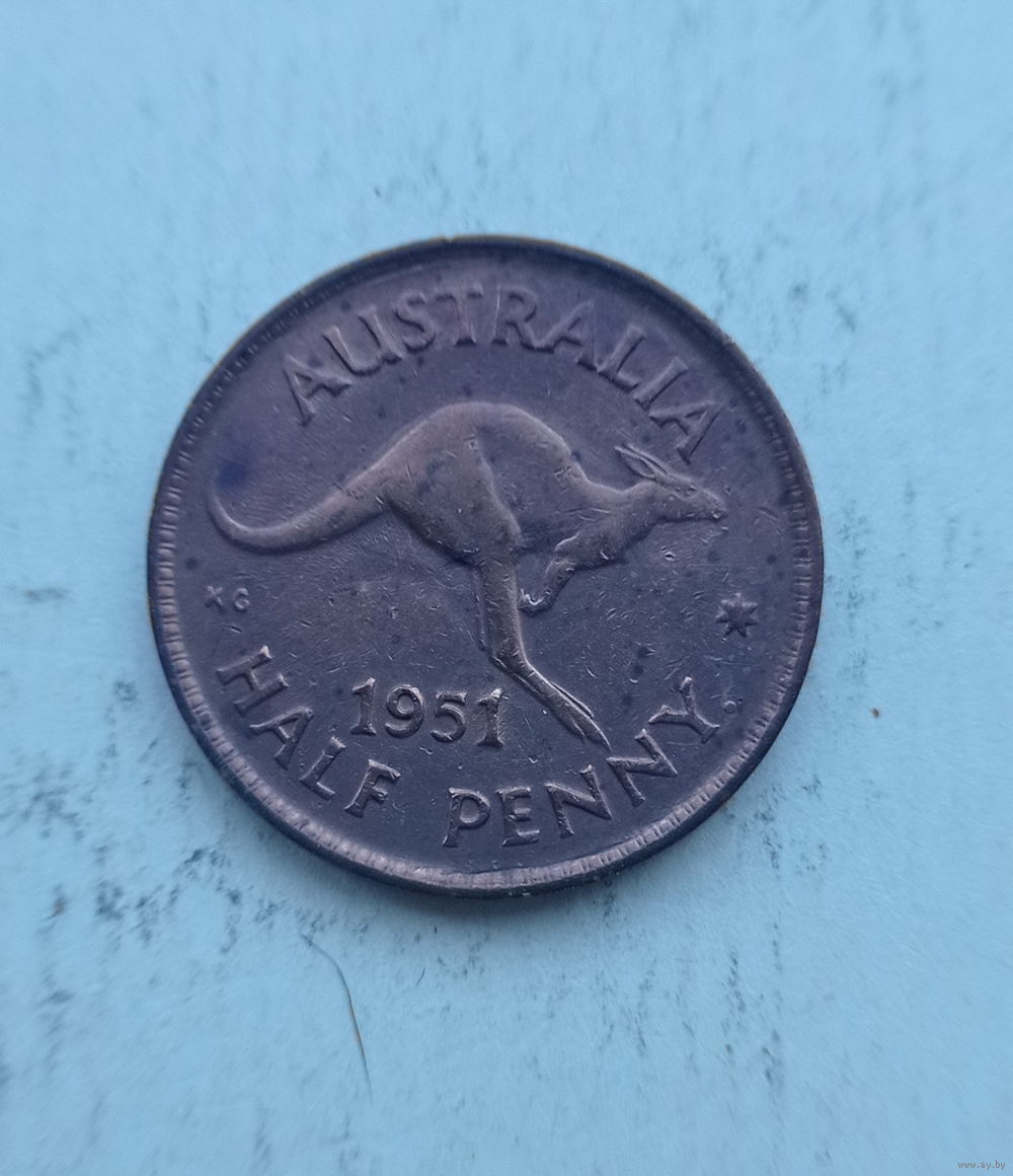 Австралия 1/2 пенни 1951 год кенгуру король Георг VI без надписи IND: IMP: