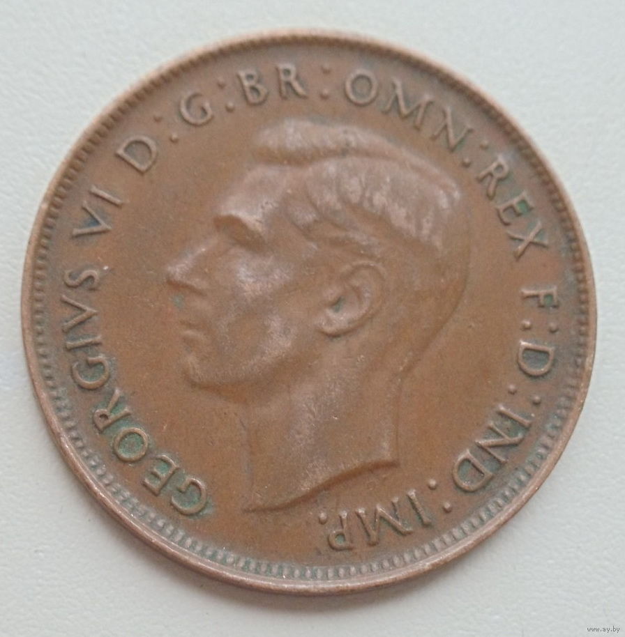 Австралия 1 пенни 1948 год король Георг VI с надписью IND: IMP: кенгуру