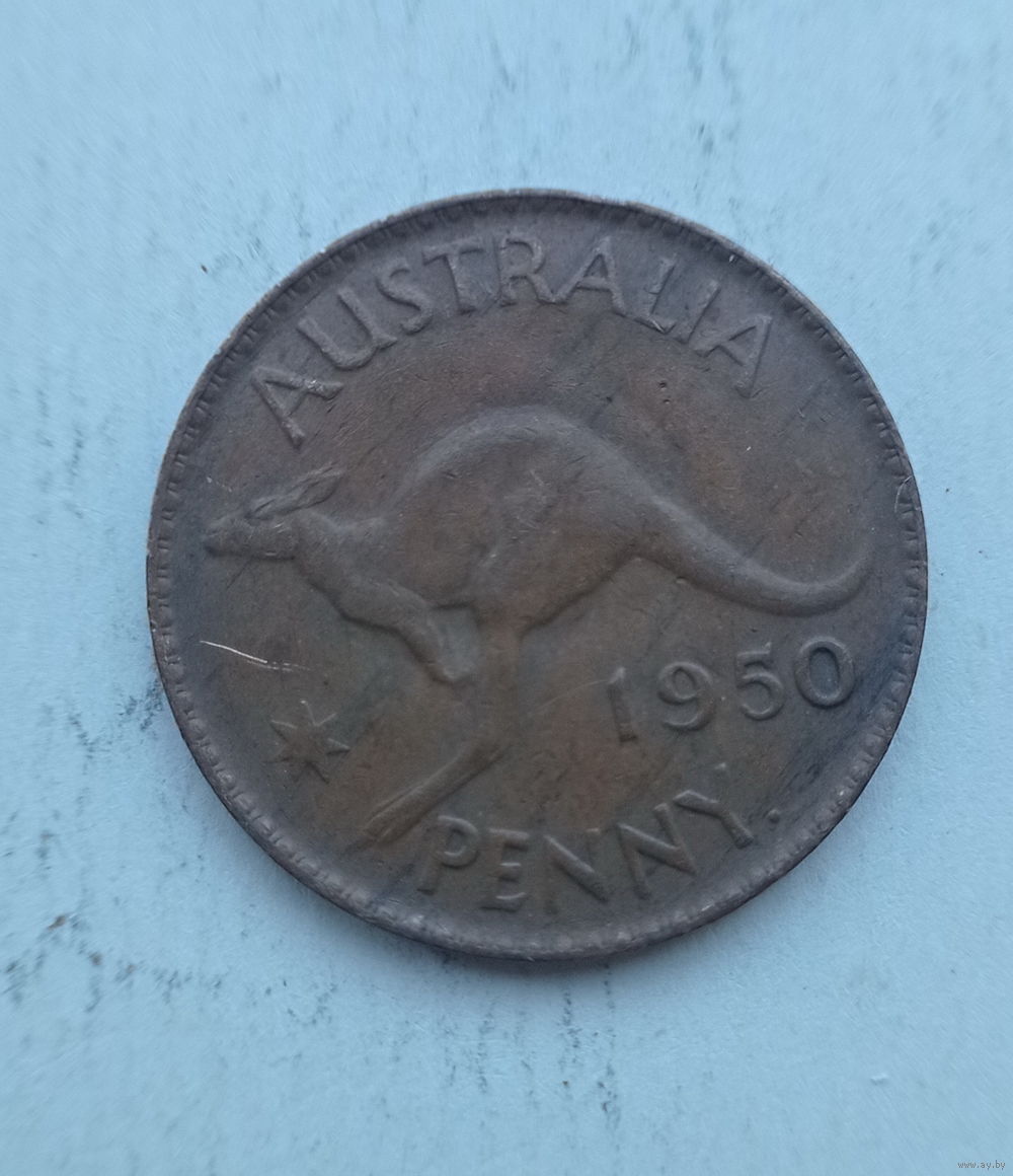 Австралия 1 пенни 1950 год кенгуру король Георг VI без надписи IND: IMP: точка после слова PENNY.