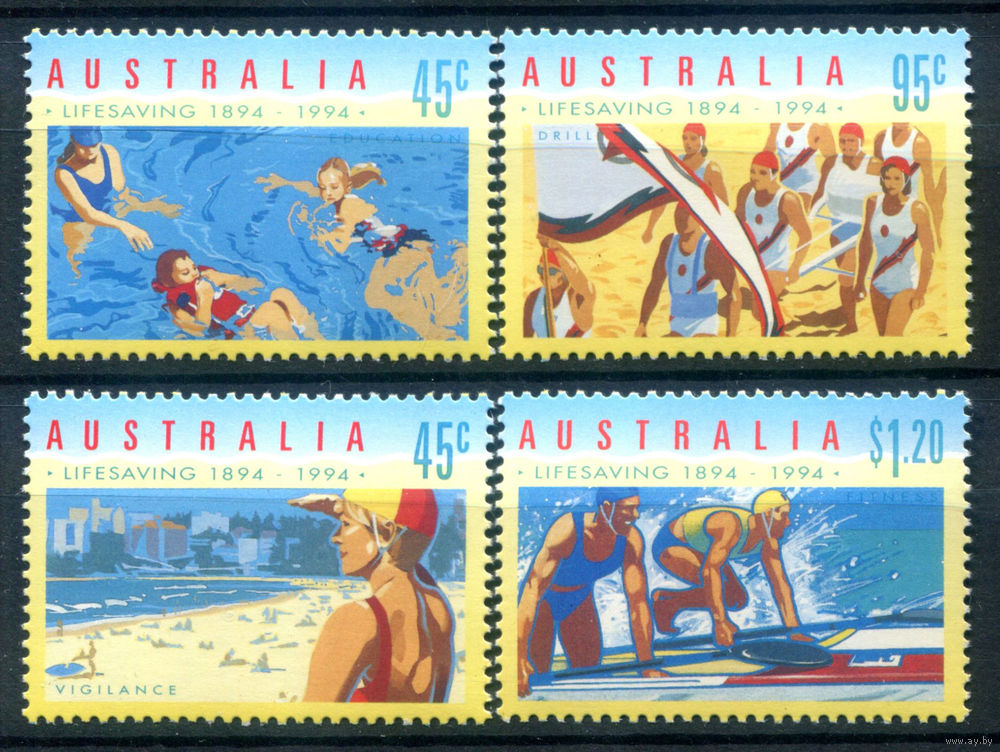Австралия - 1994г. - Столетие организованного спасания на водах в Австралии - 4 марки - полная серия, MNH [Mi 1385-1388]. #3-WB-Z-1-27