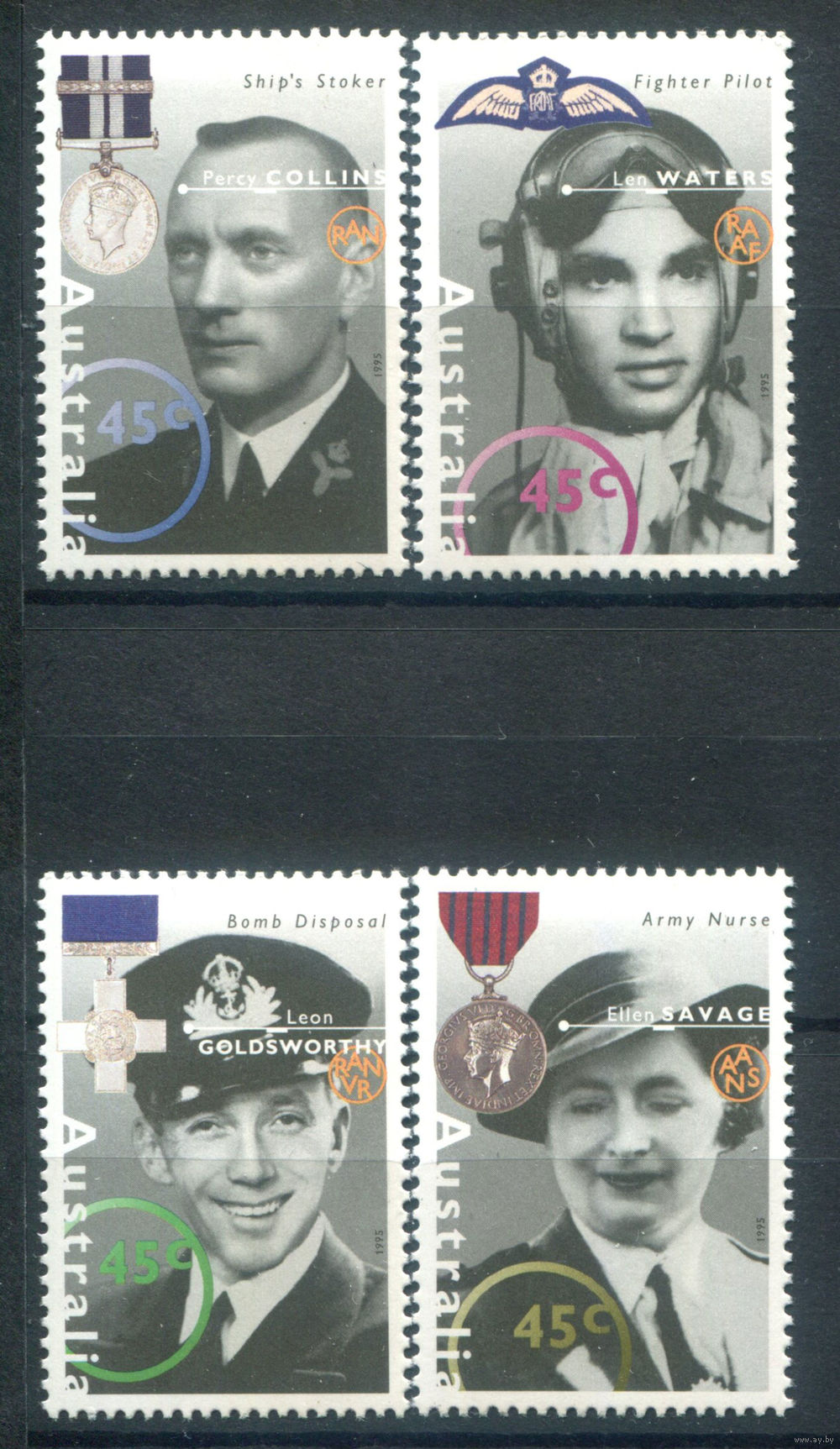 Австралия - 1995г. - известные люди Второй Мировой войны - 4 марки - полная серия, MNH, 1 марка с маленькой потёртостью на клее [Mi 1490-1493]. #3-WB-Z-1-27