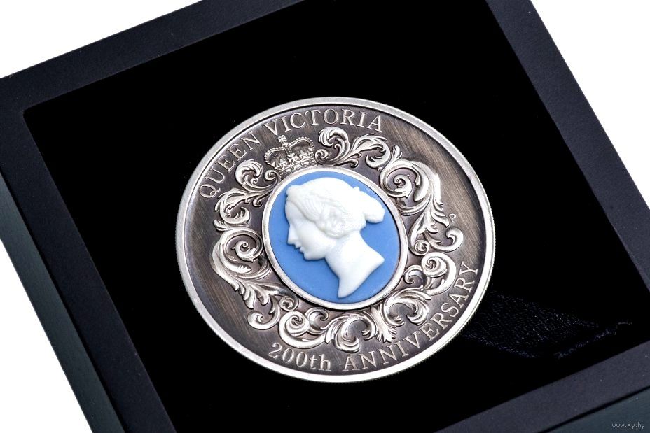 Вставка: Искусственная камея Виктории, основанная на оригинале, созданном сыном главного гравера Королевского монетного двора Уильяма Вайона, Леонардом Чарльзом Вайоном.