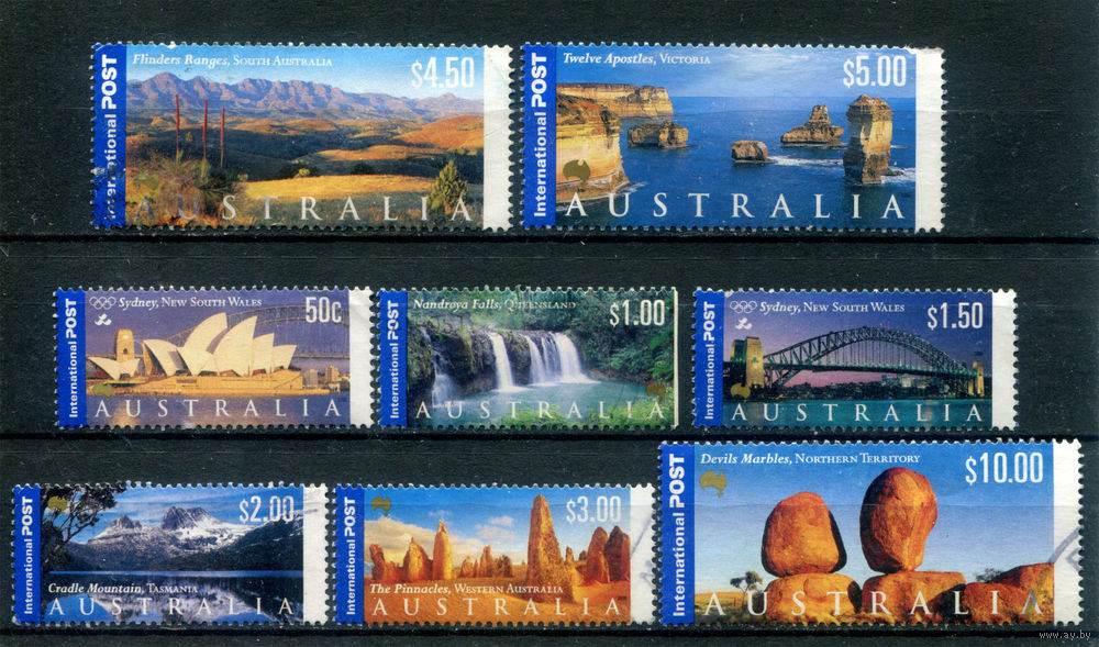 ![Австралия - 2000г. - достопримечательности - 8 марок - полная серия, гашёные, номинал 5 с небольшим повреждением лицевой стороны (справа сверху) [Mi 1928-1935]. #3-WB-101-KS-3](https://s5-lot.aystatic.by/550x510/679/252/5040/5040252679_0.jpg)