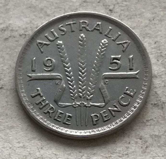 Австралия 3 пенса 1951 Георг VI - серебро 0,500