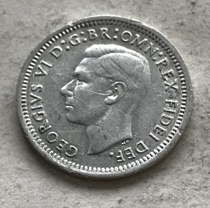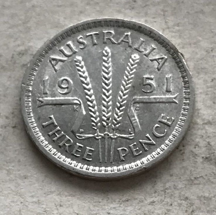Австралия 3 пенса 1951 (отметка PL - Лондон) Георг VI - серебро 0,500