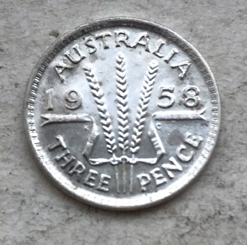 Австралия 3 пенса 1958 Елизавета II - серебро 0,500