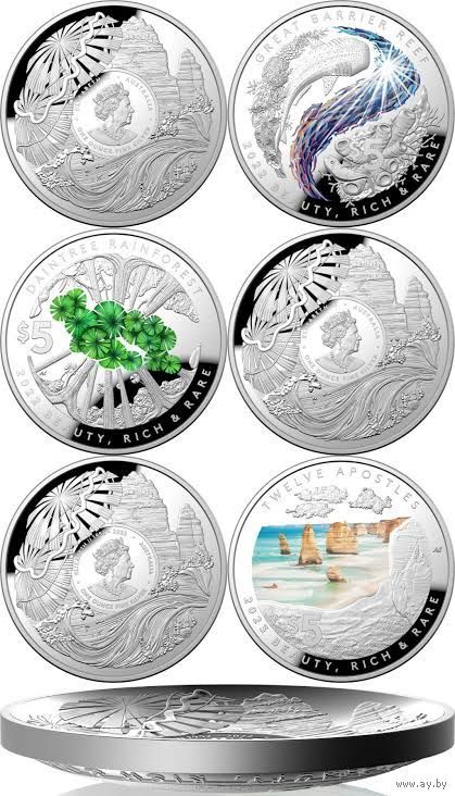 3. Австралия 5 долларов 2023г. "Красота - богатая и редкая: Двенадцать Апостолов". Монета в капсуле; подарочном футляре; номерной сертификат; коробка. СЕРЕБРО 31,10гр.(1 oz).