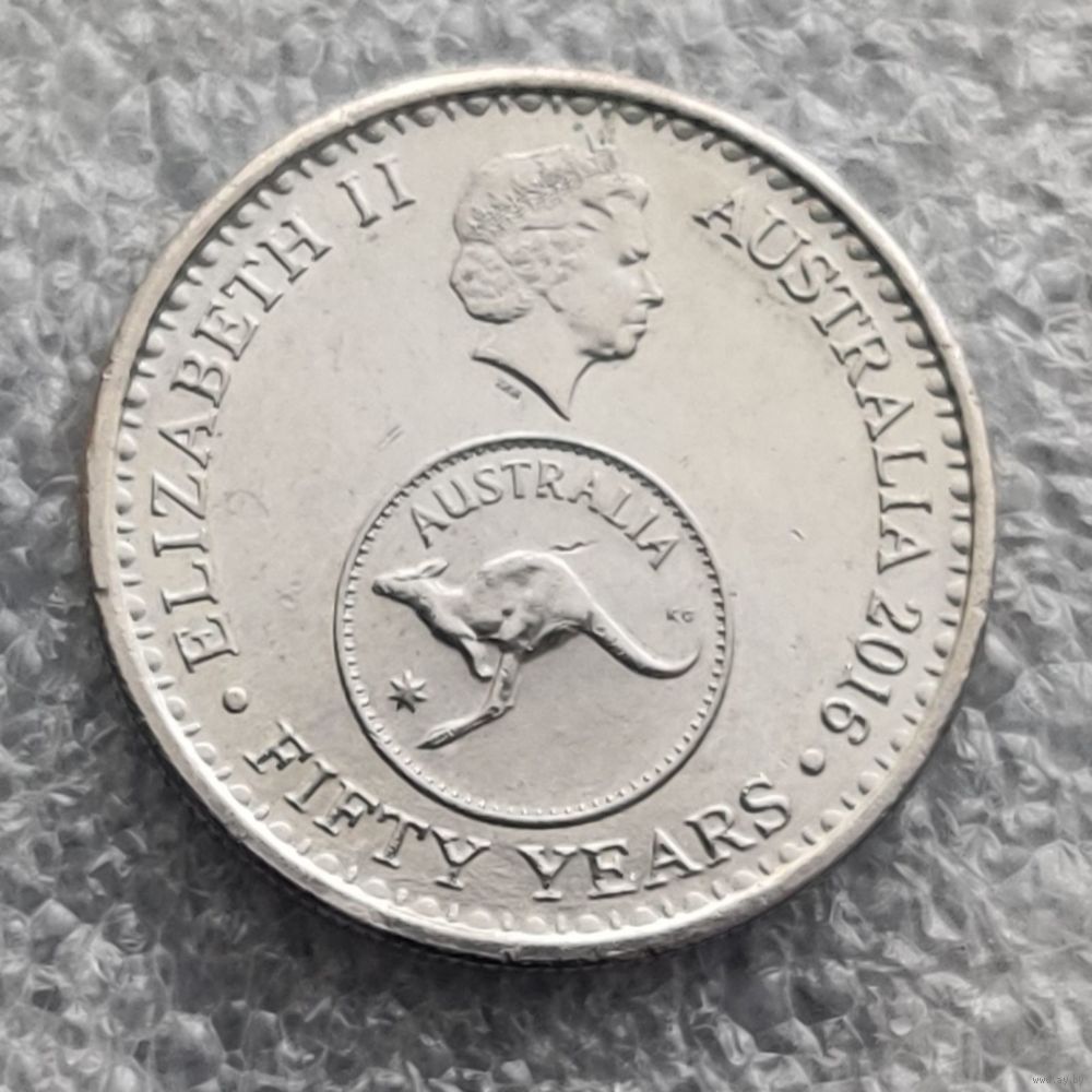 Номер UC # 150 Страна Австралия Период Королева Елизавета II (1966 - 2024) Правитель Елизавета II Валюта Австралийский доллар Вид чекана Юбилейные монеты Номинал 5 центов Год 2016 Наименование 50 лет переходу на десятичную систему национальной валюты Гурт Рубчатый Форма Круг Отношение авс/рев Медальное (0°) МатериалМедно-никелевый сплав Вес (g) 2,83 Диаметр (mm) 19,41 Толщина (mm) 1,3