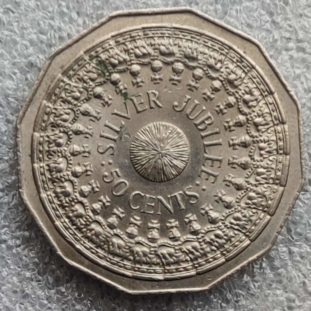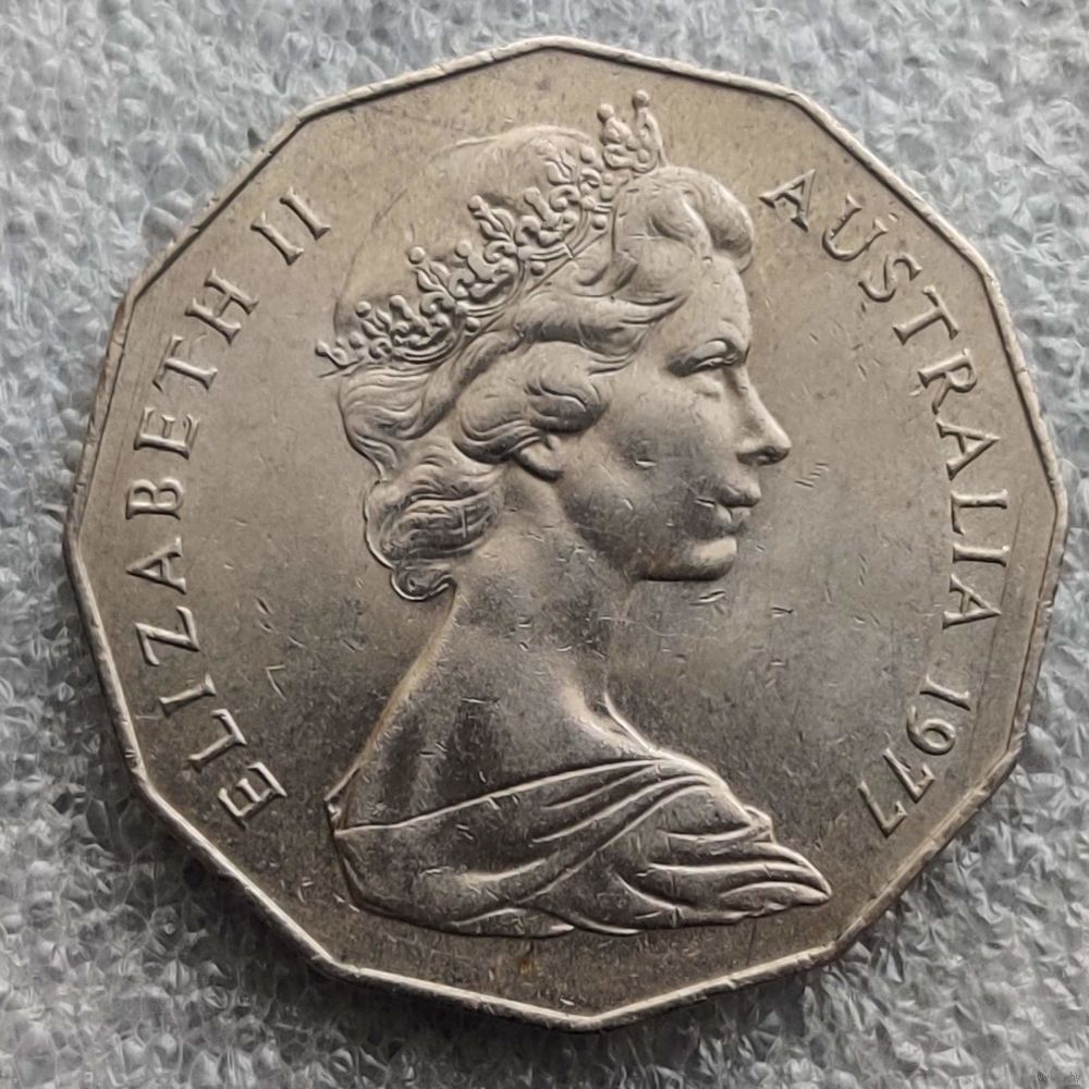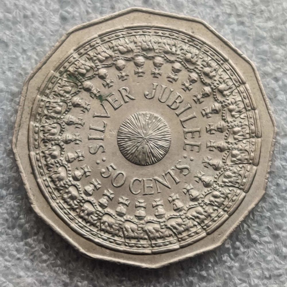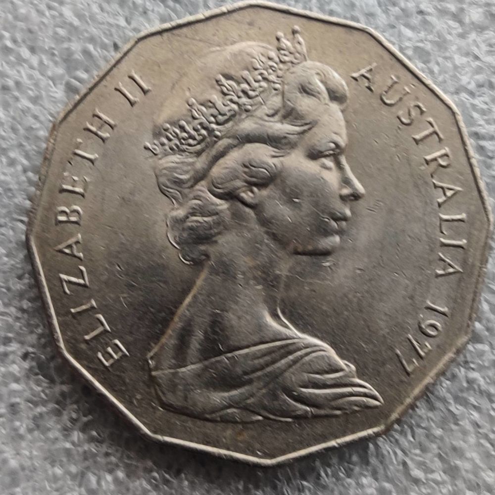Номер KM # 70 Страна Австралия Период Королева Елизавета II (1966 - 2024) Правитель Елизавета II Валюта Австралийский доллар Вид чекана Юбилейные монеты Номинал 50 центов Год1977Наименование25 лет правлению Королевы Елизаветы II Гурт Гладкий Форма 12-угольник Отношение авс/рев Медальное (0°) Материал Медно-никелевый сплав Вес (g) 15,55 Диаметр (mm) 31,5 Толщина (mm) 3
