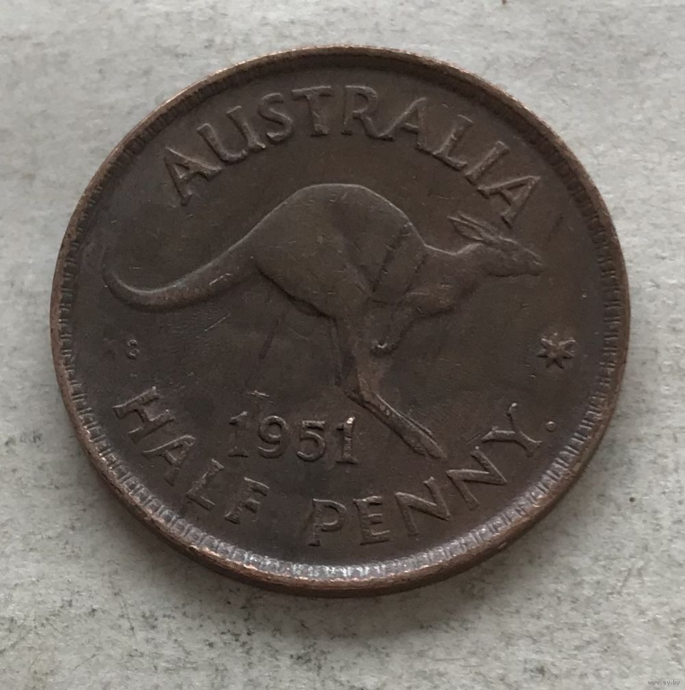 Австралия пол-пенни 1951 Георг VI (Перт - с точкой)