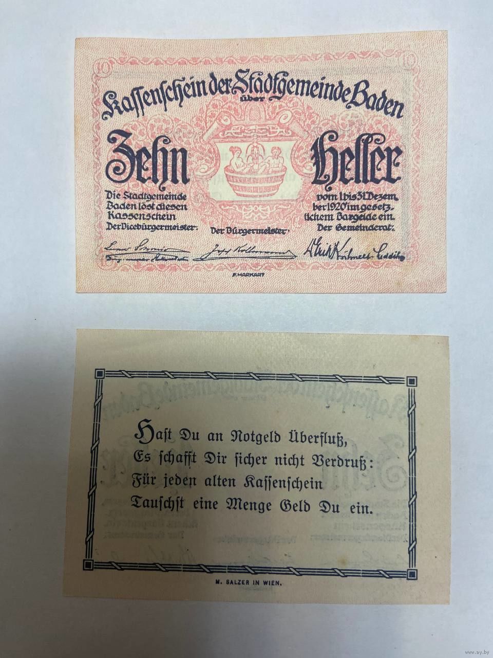Австрия 10 геллеров нотгельд Баден- 2101 (2)