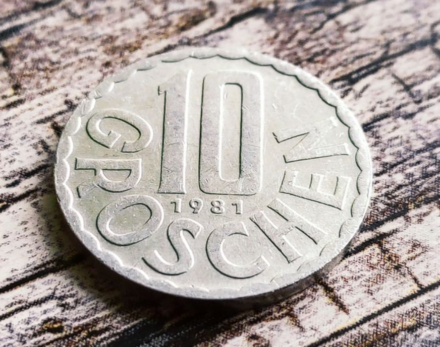 Австрия. 10 грошей 1981. Брак, разворот (поворот).