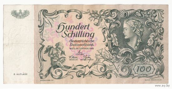 Австрия 100 шиллингов 1949 года. Второй выпуск. Тип P-132. Состояние XF