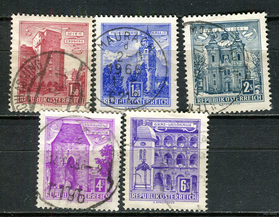 Австрия - 1958/1960 - Стандарты. Архитектура - 5 марок. Гашеные. (Лот 5JL)-TG2P32